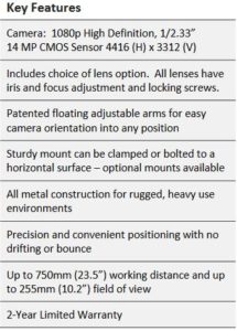 Dazor’s patented and familiar “floating arm” allows the user complete control over orienting the HD camera into any desired position while minimizing the system’s total footprint. No longer is it necessary to clutter valuable bench top real estate with a heavy boom stand or other weighted base.