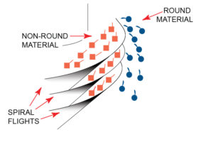 Using physics and a precisely designed piece of equipment, the material is discharged onto a banked metal flight which is spirally wound around a central shaft. As the material flows down the separator, its speed increases, and centrifugal force carries it toward the outer edge of the flight.